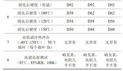 2)球磨35h制得的片狀銀粉制得的導電銀膠,銀膠的粘度、觸變指數(shù)、推力測試、導電性能、點膠、固化后硬度測試、高低溫冷熱沖擊測試及高溫高濕測試均滿足應用。